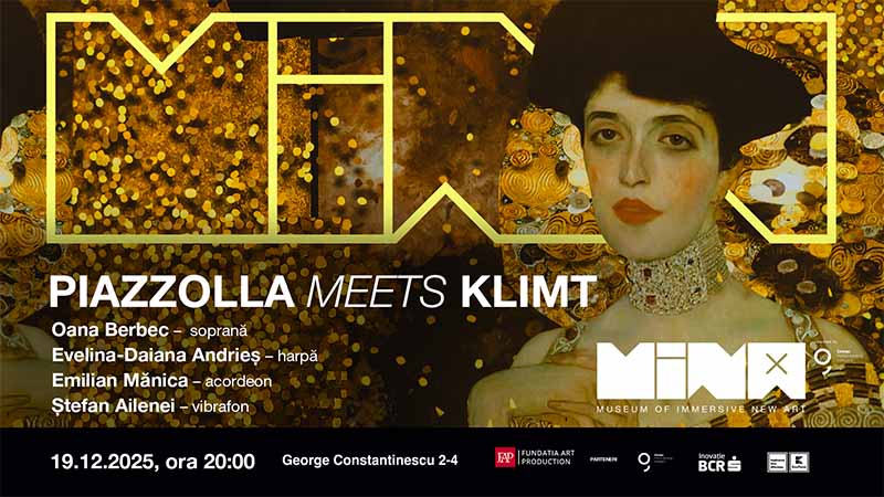 Când aurul lui Gustav Klimt întâlnește febra tangoului lui Astor Piazzolla, se naște o seară care pulsează între pasiune, tensiune, libertate și melancolie. Culorile prind ritm, liniștea devine vibrație, iar atmosfera se încinge în valuri sud-americane – de la tango-ul urban, magnetic, până la accentele altor ritmuri latino care completează această experiență incendiară.