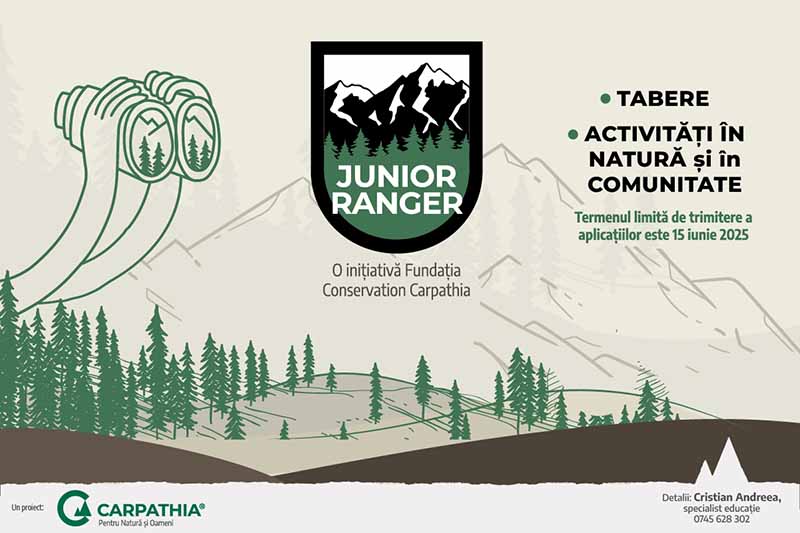 Fundația Conservation Carpathia continuă să sprijine formarea noii generații de tineri dedicați protejării naturii și lansează a treia ediție a programului Junior Ranger. Programul se adresează elevilor de gimnaziu din 12 localități din județul Argeș și oferă oportunități de învățare și implicare activă în protejarea naturii, alături de echipa de rangeri și educatori ai fundației. Înscrierile sunt deschise până în 15 iunie 2025.